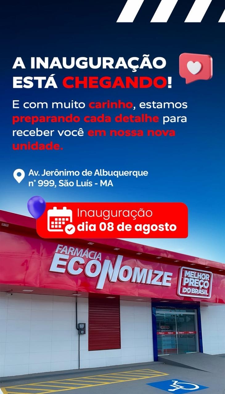 Nesta sexta-feira, 08 de agosto, a cidade de São Luís recebe a inauguração de uma nova unidade da Farmácia Economize, a rede que mais cresce no Brasil no setor farmacêutico.